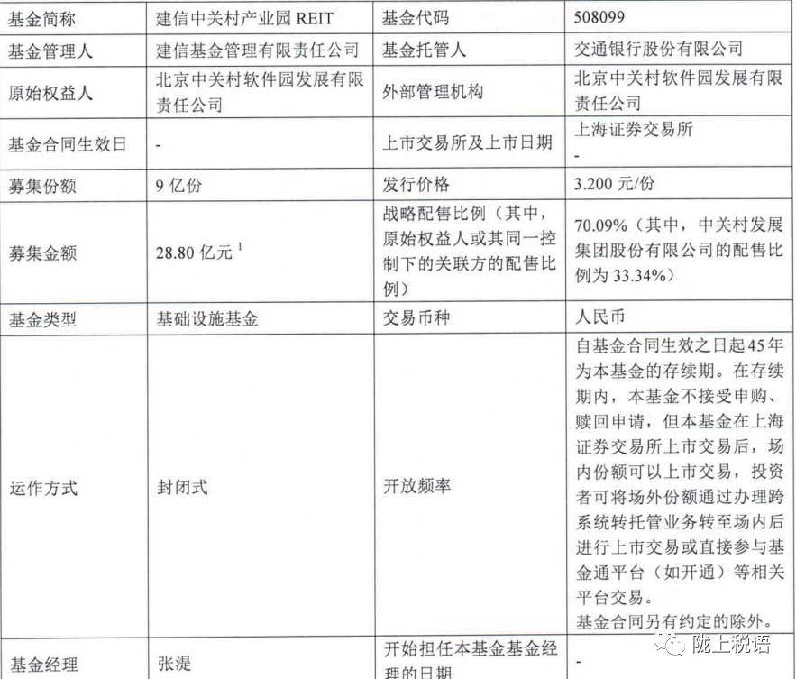 2021年11月23日,建信中关村产业园封闭式基础设施证券投资基金发布了招募说明书,现将主要资料摘录并分享如下,供税务爱好者研究学习: