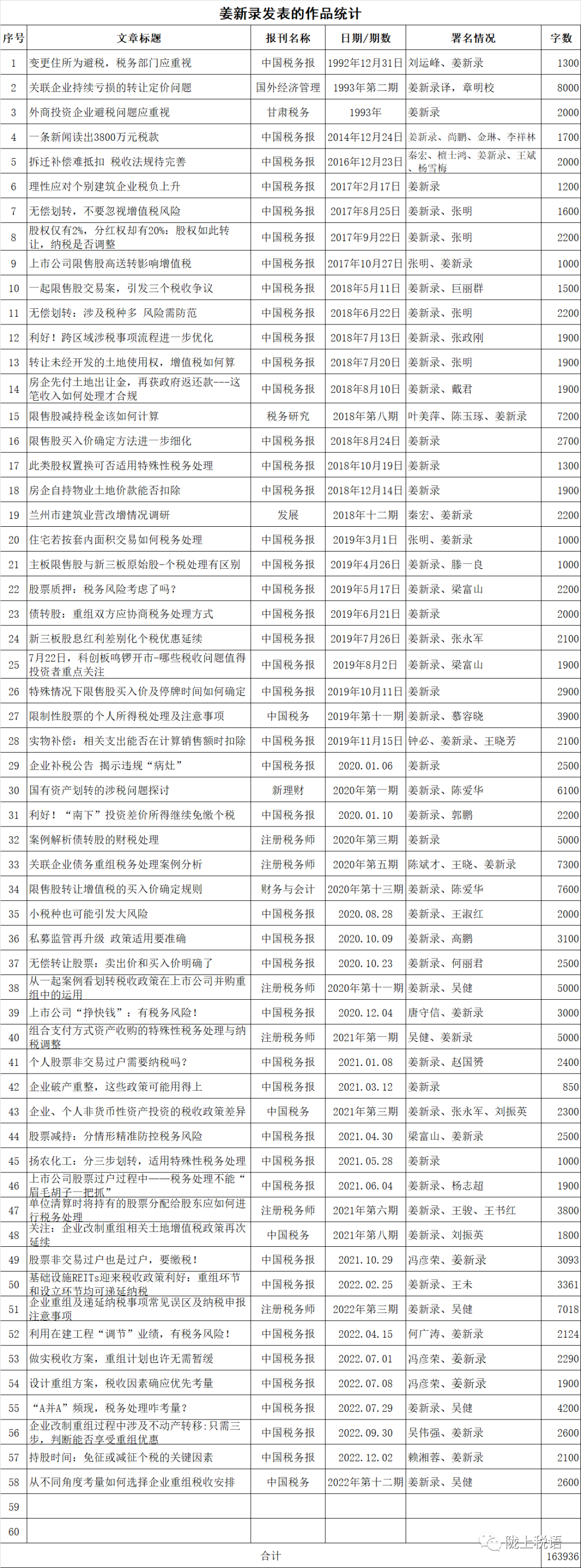 1、《从不同角度考量如何选择企业重组税收安排》,发表于《中国税务》杂志2022年第十二期,作者:姜新录、吴健
