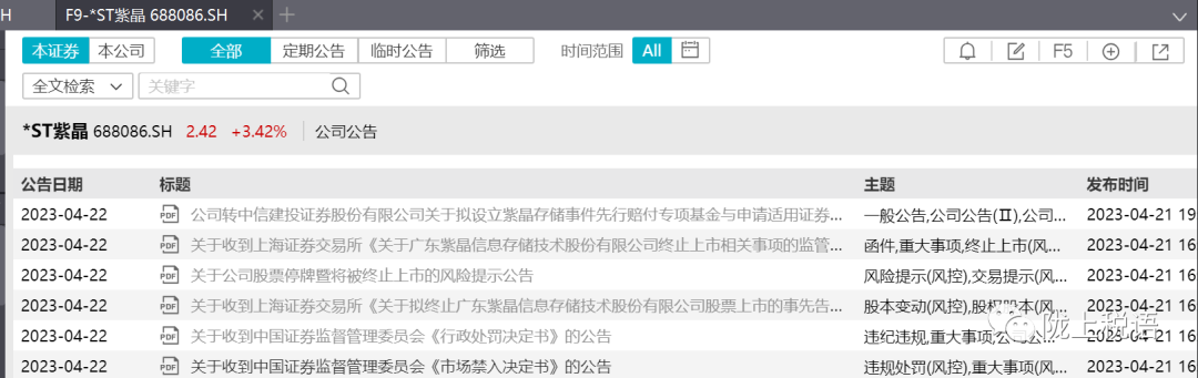 2019年4月3日,紫晶存储披露《广东紫晶信息存储技术股份有限公司首次公开发行股票并在科创板上市招股说明书》(以下简称《招股说明书》)申报稿。10月23日,紫晶存储获得上海证券交易所科创板股票上市委员会审议同意发行上市(首发)。2020年1月19日,紫晶存储获得中国证券监督管理委员会(以下简称证监会)下发的《关于同意广东紫晶信息存储技术股份有限公司首次公开发行股票注册的批复》。2月21日,紫晶存储披露《招股说明书》正式稿。2月26日,紫晶存储在科创板上市。