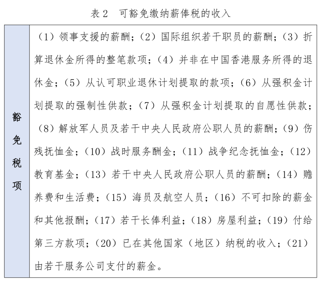 《税务条例》规定,表2中本应计征薪俸税的收入可豁免缴税。