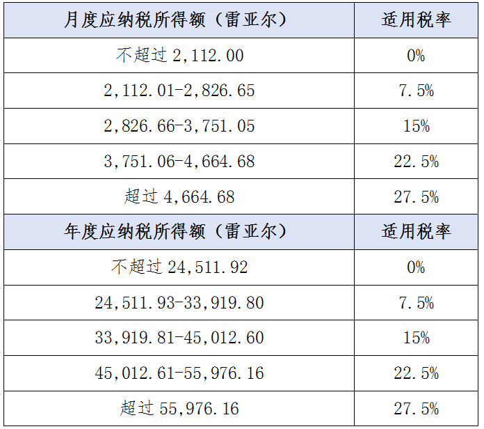 2023年5月22日,巴西税务机关修订了个人所得税条例,主要更新了月度和年度应纳税所得额和适用税率。